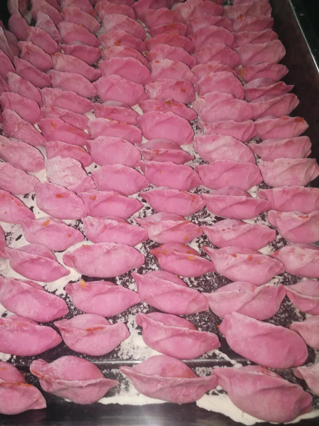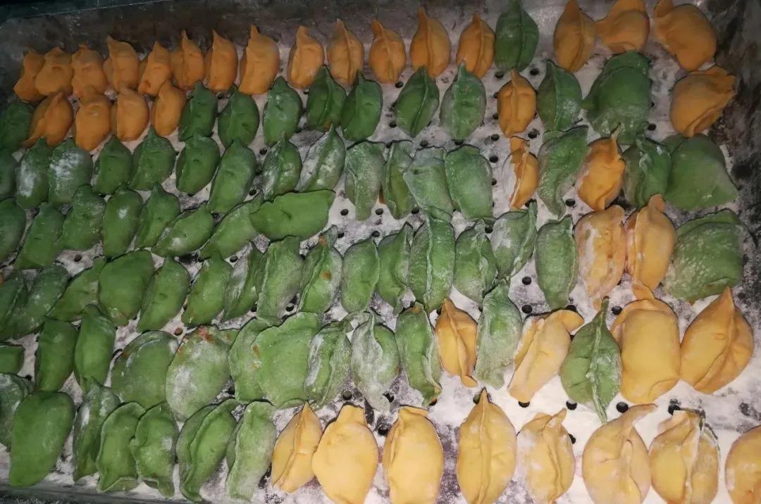 以比赛形式开展,以羊肉、牛肉、鸡蛋韭菜为馅料,菠菜的绿,火龙果的红,南瓜的黄,面粉的白,寓意春夏秋冬四种颜色的面团象征着2021年新天地人出彩的四季。本次活动共